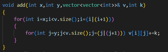for(int j=y;j>=0;j = (j&(j+1))-1) ret+=v[i][j];