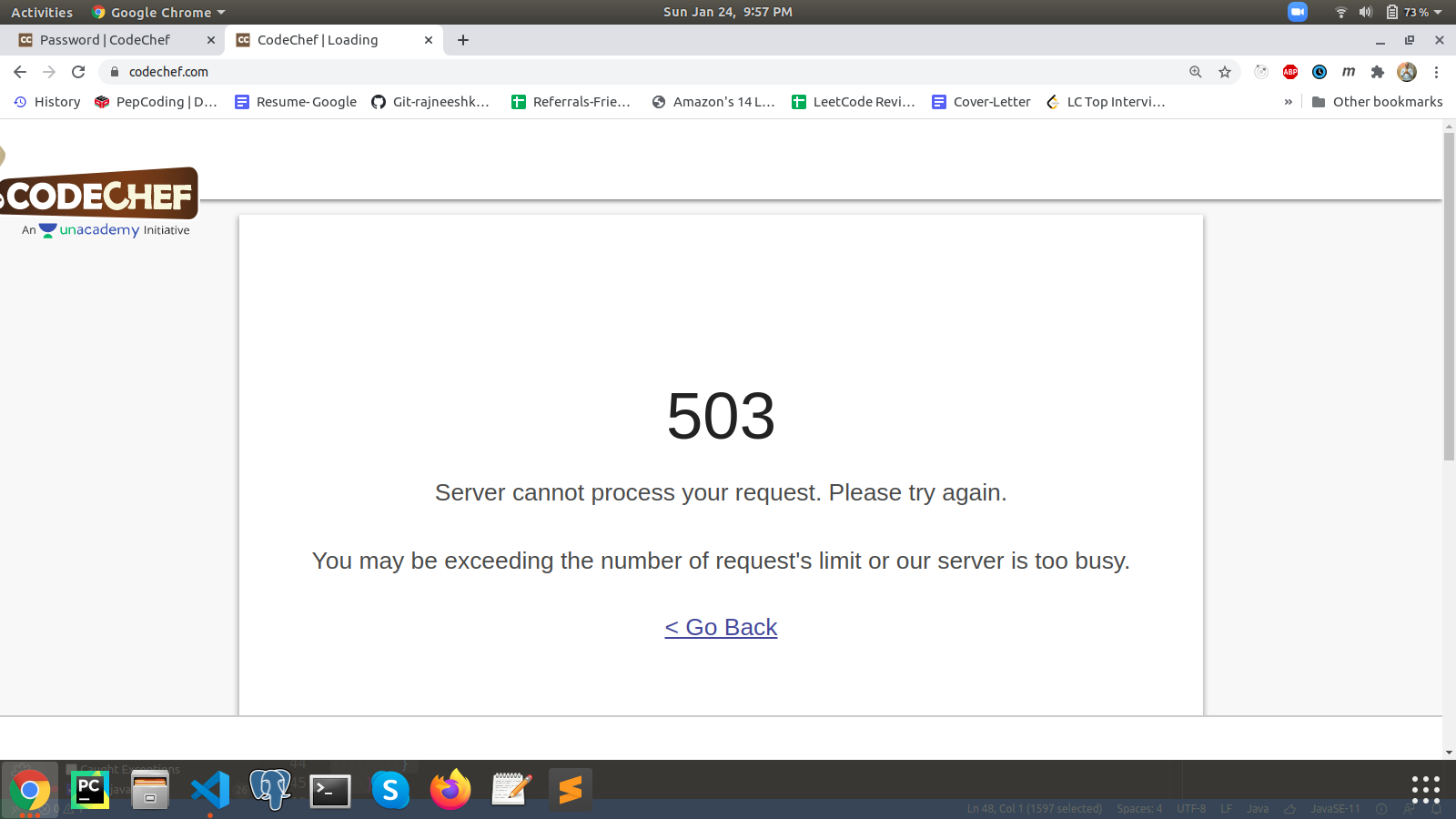 I can’t submit the code, it say’s you have reached to max-request-limit or server is overloaded, please look into this issue.