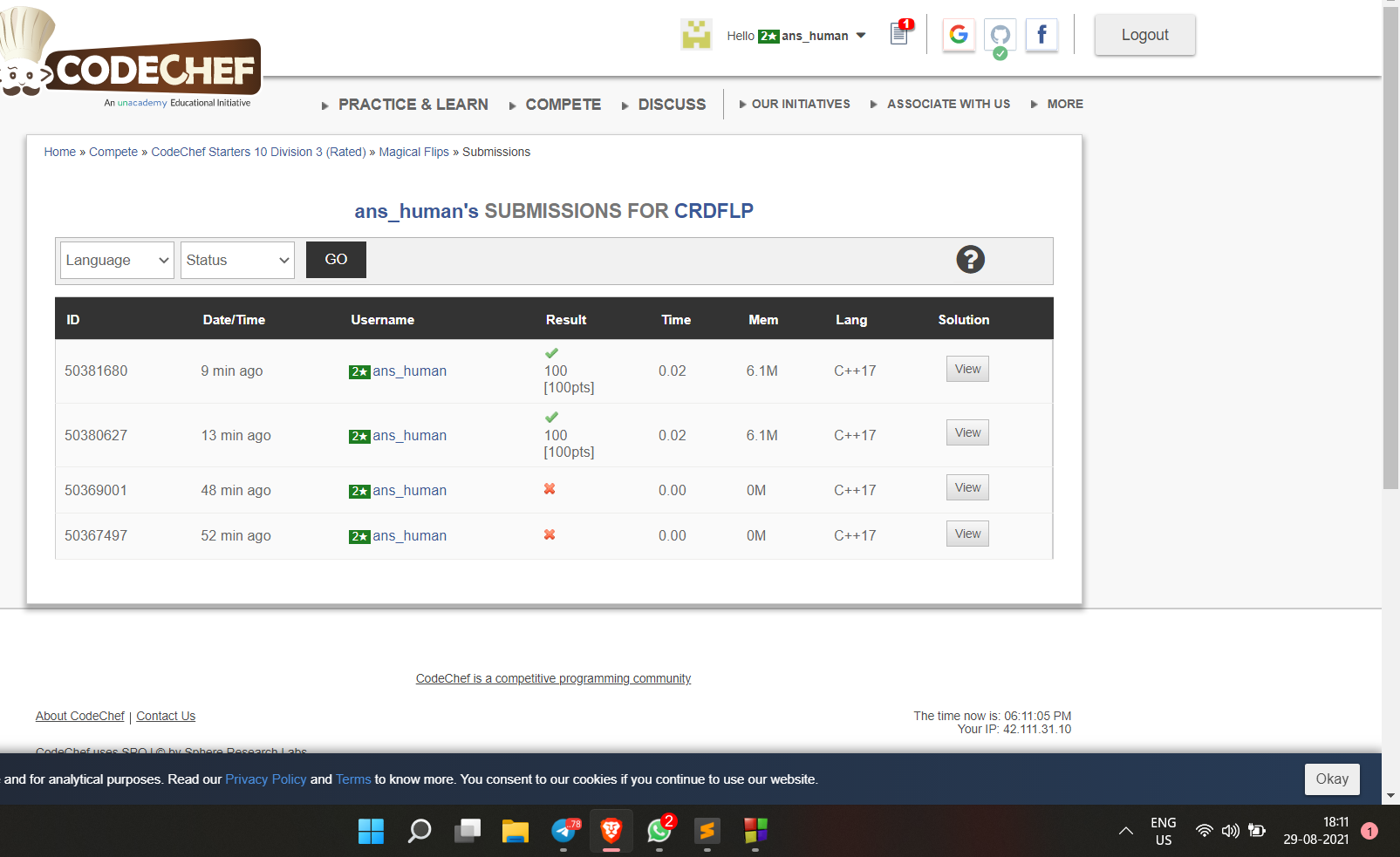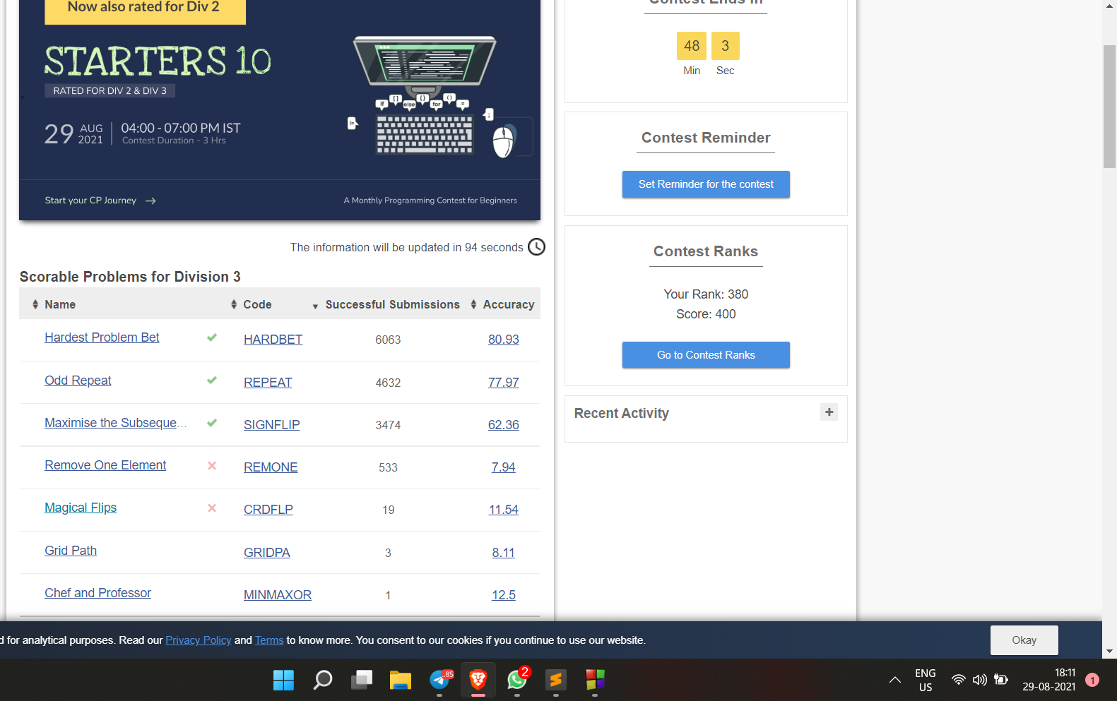 I am giving the contest CodeChef Starters 10 Division 3 live.