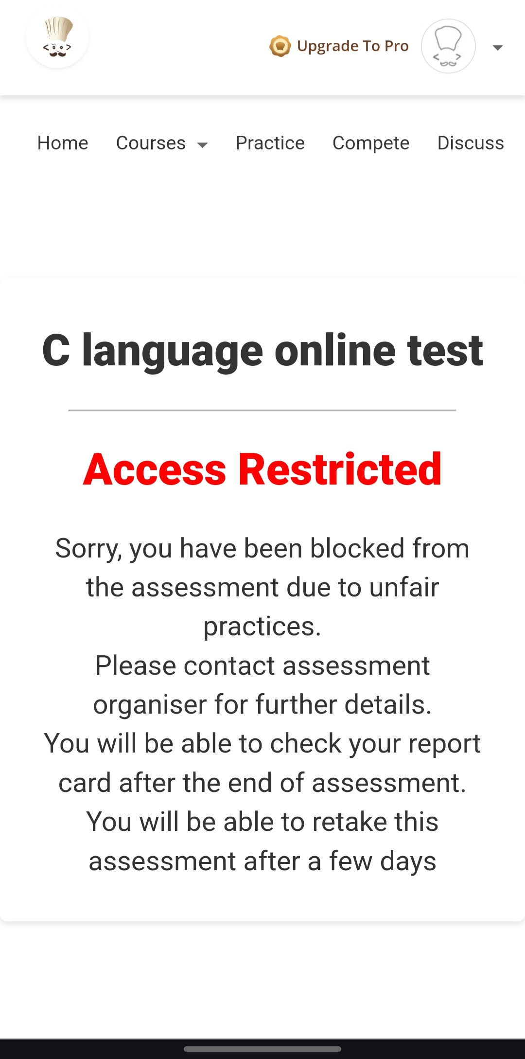 Was taking the test on my phone and due to the screen time, the phone got locked twice and the third time I get this notification. Please look into this matter.