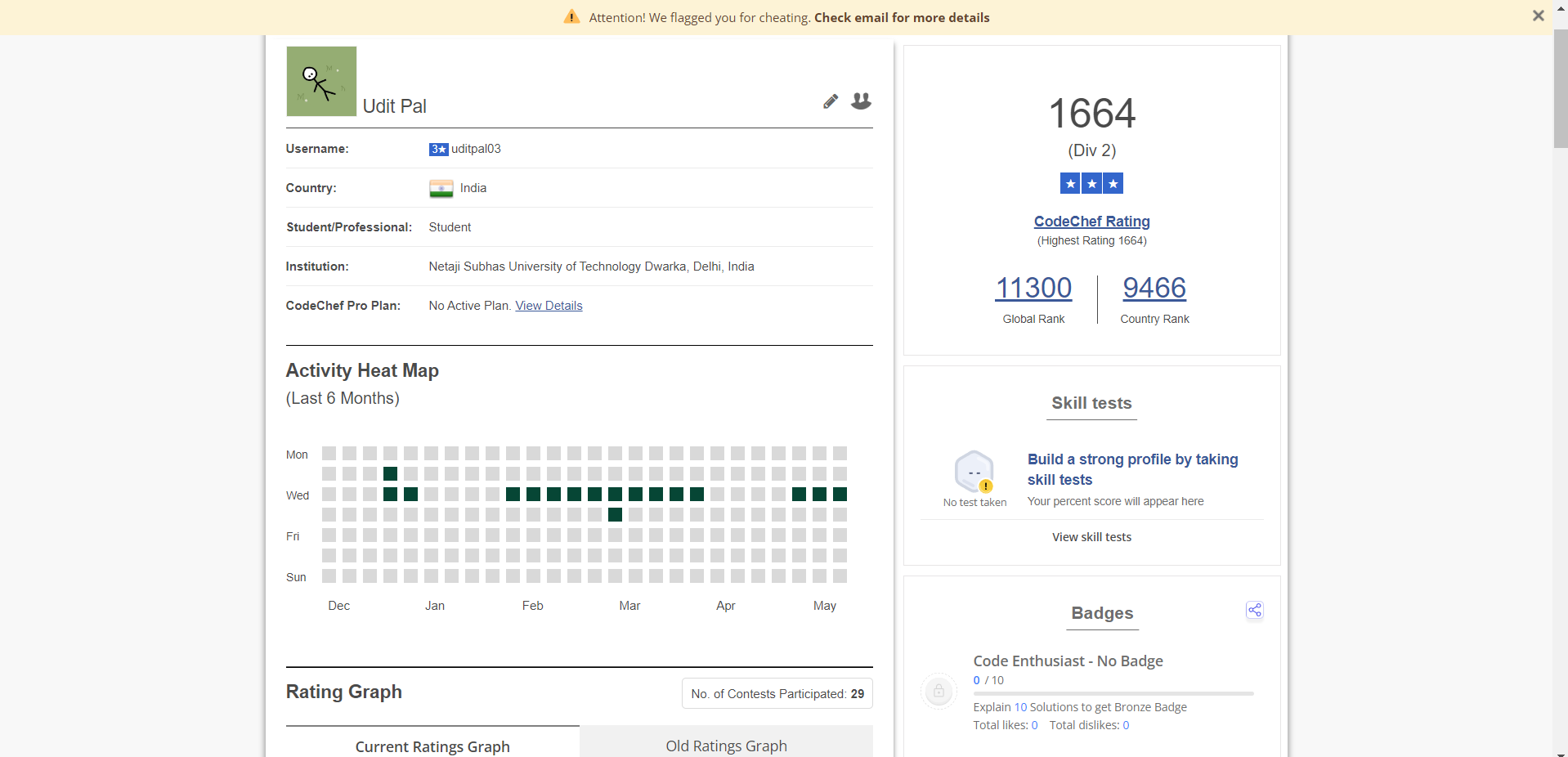 I’ve participated in total of 29 contests within the span of 2 years (2022-2024) and never have I ever done cheating nor received some warning like that.