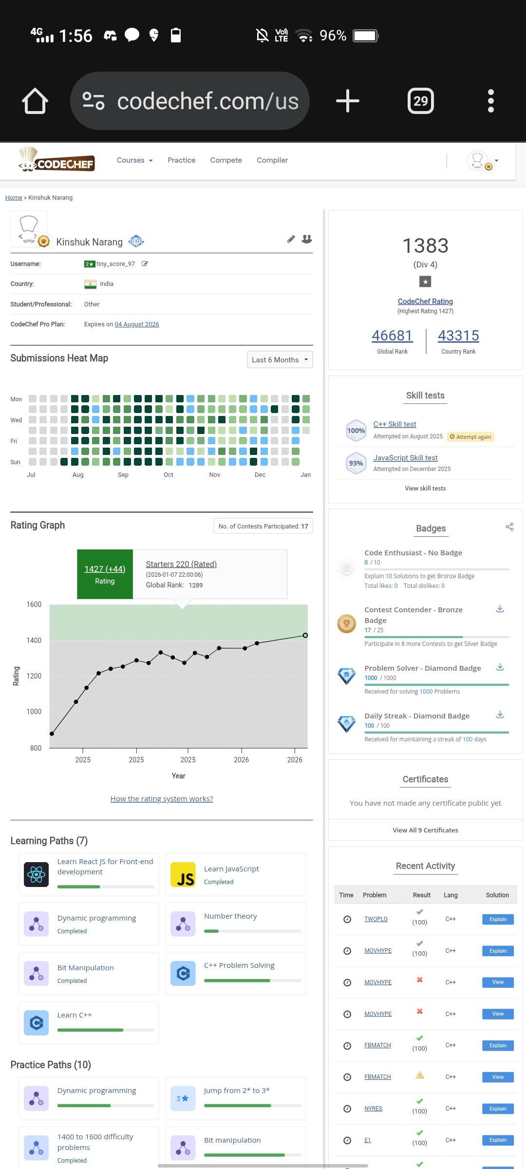 Rating on my profile has not changed after yesterday’s contest
