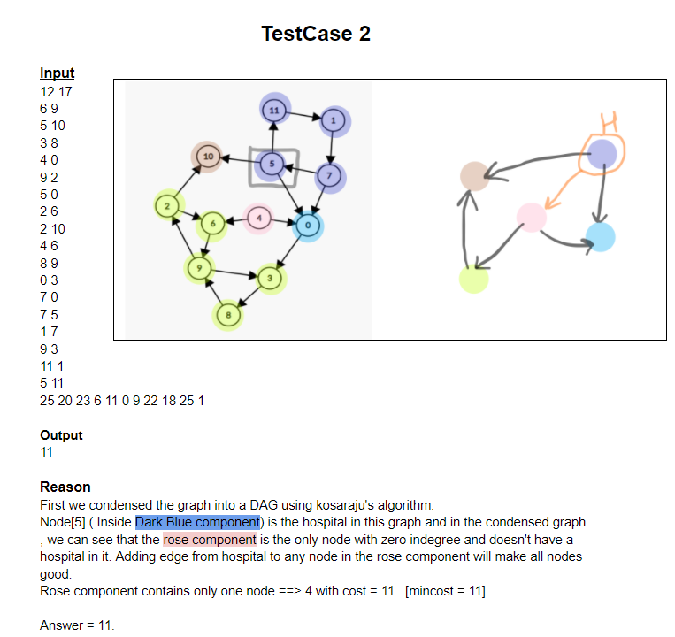 - Answer = sum of all the min_cost( components ) which have indegree zero and does not have hospital in it.
