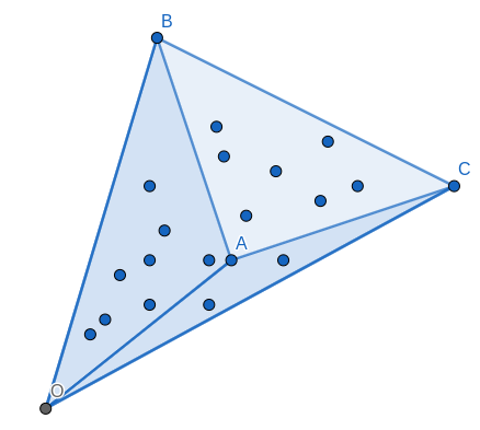After this is done each subset is actually counted twice: for AB and for CD thus you will have to halve the number you obtained to get the answer. This part works in O(n^3 \log n) given that we calculated all possible \sharp ABC, but how to calculate them?