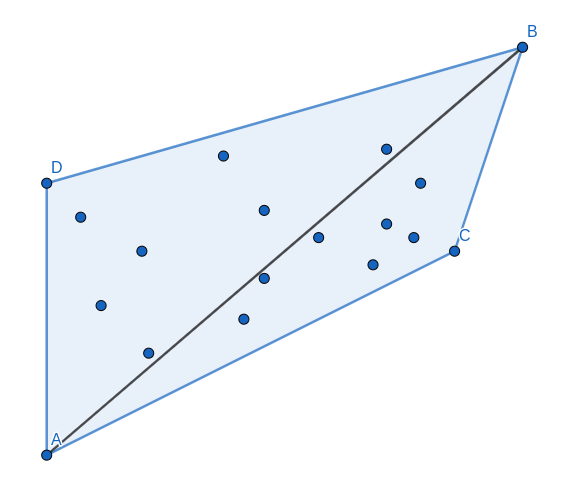Now that we splitted subset generation on two independent triangles \triangle ABC and \triangle ABD, we may efficiently enumerate all subsets having AB as diagonal in convex hull.