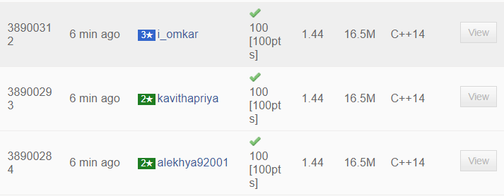 codechef going to be disgusting day by day… rank of cheaters decreasing but what for fair coders , their rank is increasing rapidly , cheaters cheating affects fair palyers but when they will be plagiarised that will never affect on those good coders who devote their precious long long time in solving brain teasers…so ultimately good ones are ruined…