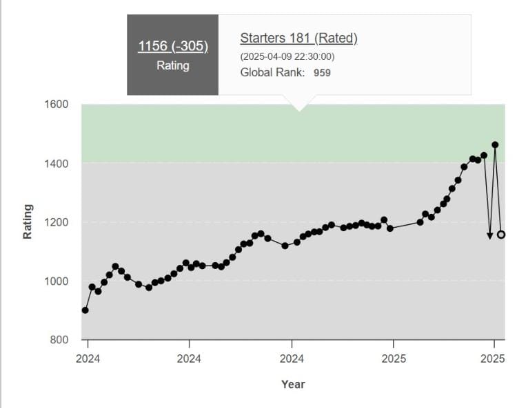 in starters 181 i have participated in division 3 and completed first 3 questions in 37 minutes but my rating was decreaded by 305