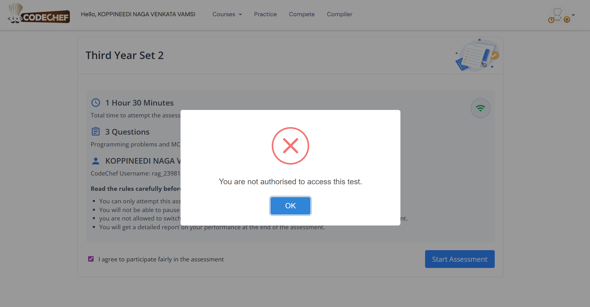 i am unable to access and attempt my college assessment