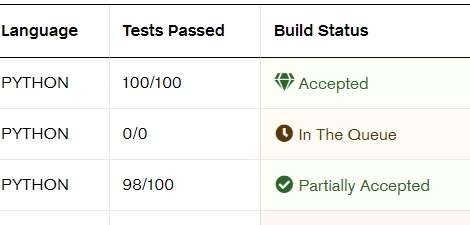 In the 4th question, has anyone managed to pass more than 0 test cases? I think my code is correct but getting 0/100 cases passed is just insane and kinda unusual.