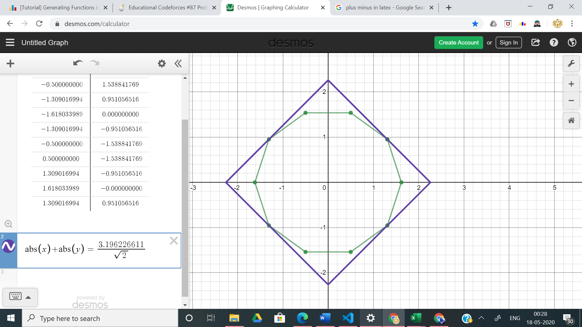 We can see that we want to find the maximum of |x|+|y| in our polygon, as that will be the minimum value of c.
