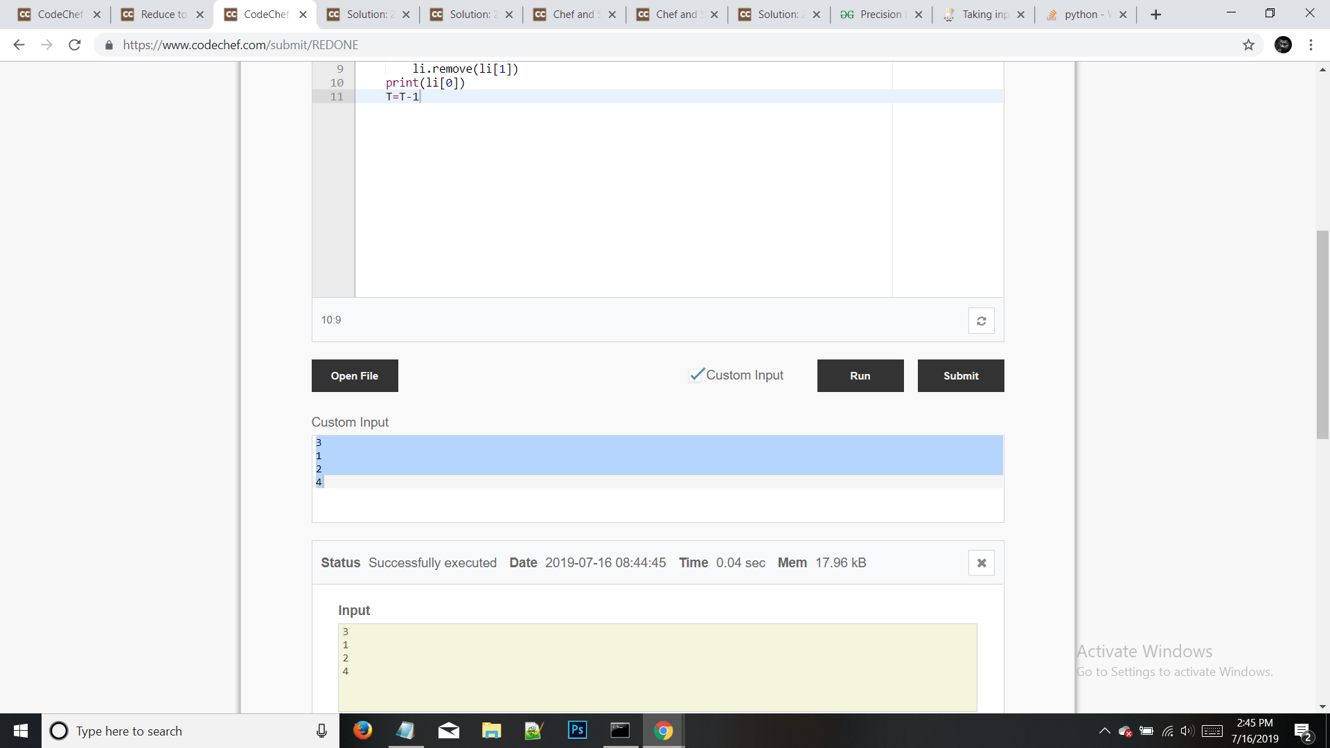 but it is seemed that the code is successfully executed when the same input values in the question is given as custom input …