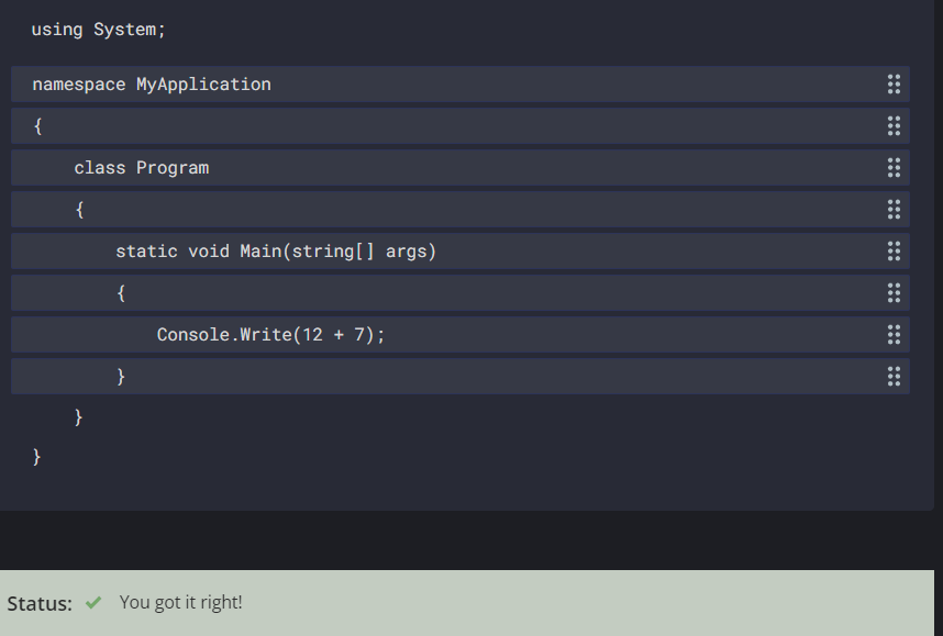 Even though I arranged the lines in the right order, the status says that it is wrong. I even viewed the answer just to make sure I was right and I am. Please check what the problem is.