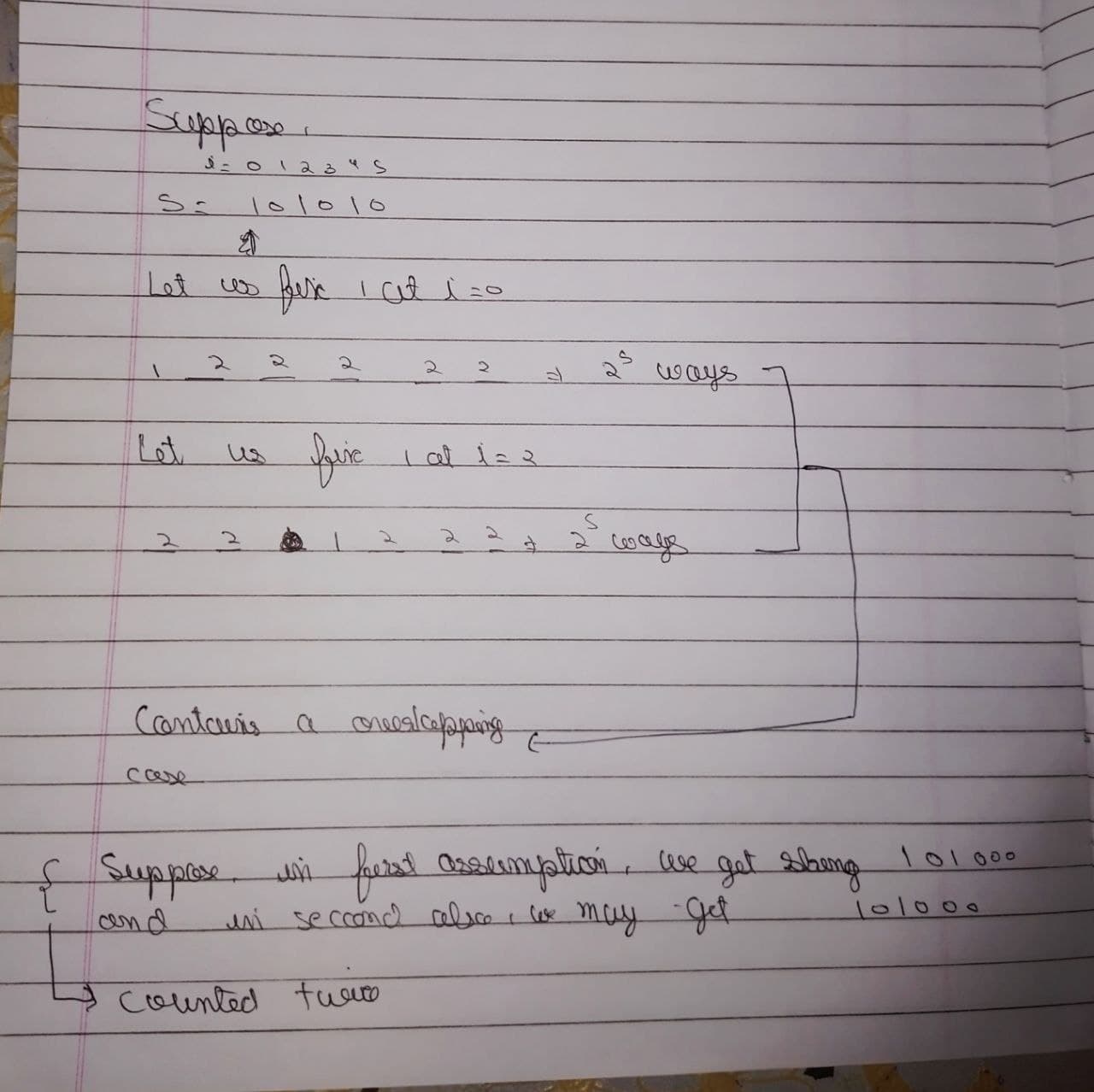 In the editorial,they have simply considered that the answer shoould be (no of ones in string )*(2^(s-1))