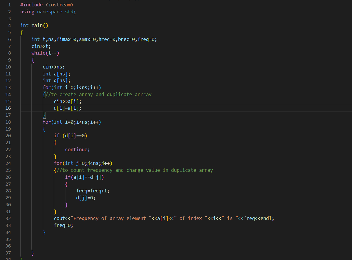 cout<<freq<<" this is value of freq of arry element "<<a[i]<<" of index "<<i<<endl;