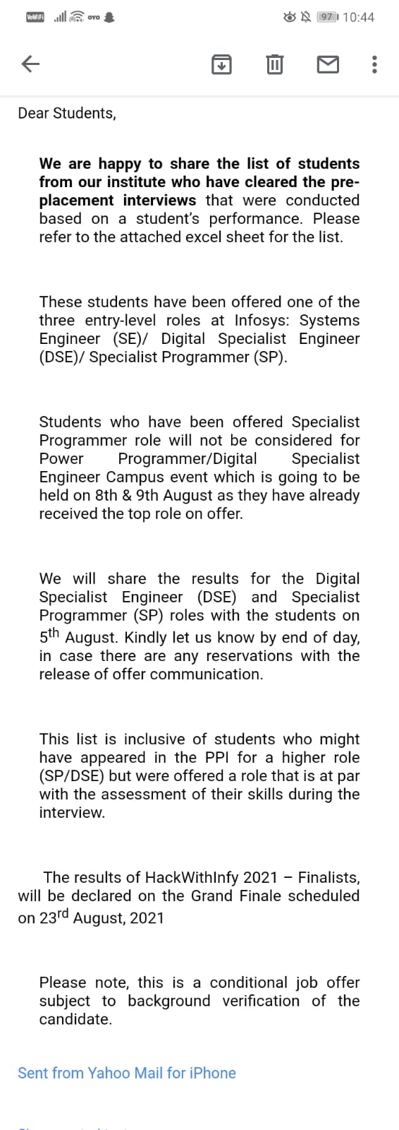 May be u r finalist or ur college is not in tie up with infosys, as yesterday college gave us a list of selected stydents and one was a pp.