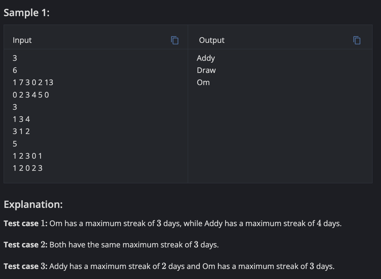 co=0;//if any streak is missed i.e. 0 problems solved =>count resets