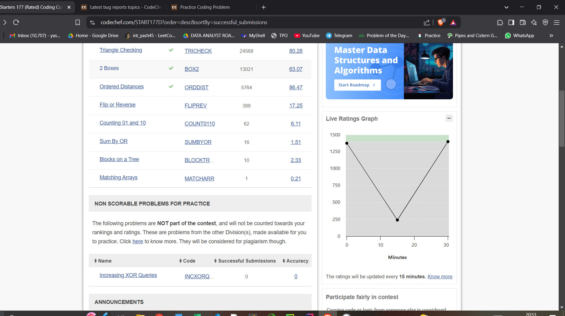 i was solving the questions and suddenly my rating got minus even i haven’t submitted any wring answers and also why would i cheat for the first two questions ??? i can’t understand if i would have to cheat i would have cheated on the question from 4th !! I request code chef team to please give my rating points back to me i got totally distracted after it !