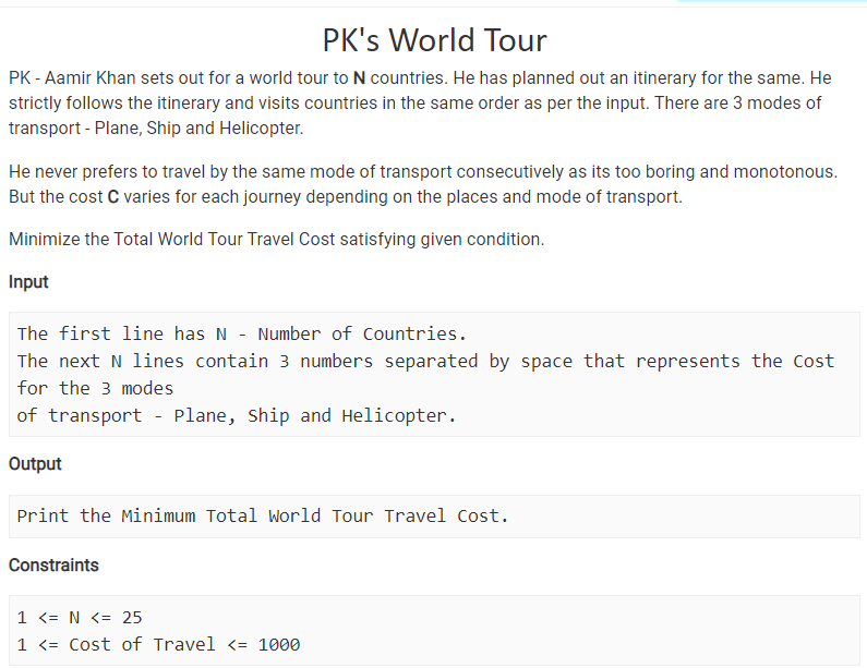 @galencolin I think even this problem is copied from AtCoder’s DP contest. Check this: C - Vacation