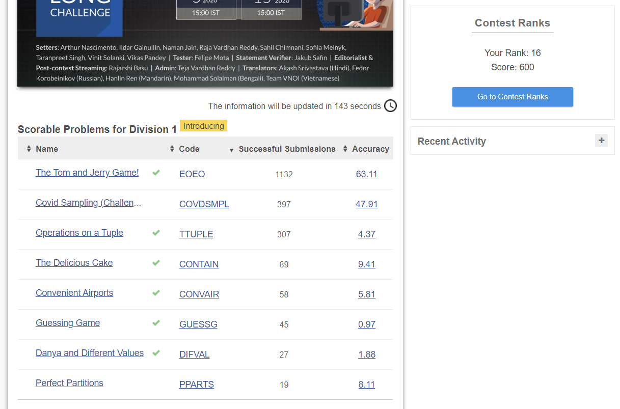This long challenge is going better than my previous ones but my rank is getting destroyed because many people are doing subtask of a question which I still haven’t done.