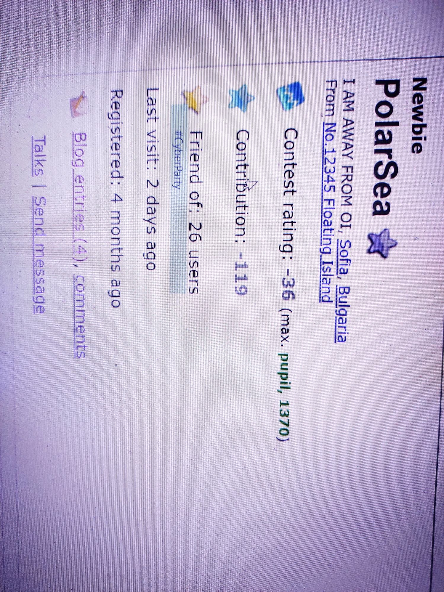How to gain your motivation? You atleast learnt a lot of things, graph theory, dp etc. Teach them to newcomers, you know more than them. See you’ve progressed. That’s how CP works. You don’t have motivation → you remember that you started with empty hands and shit → You learnt a lot of things → It’s too late to quit now!