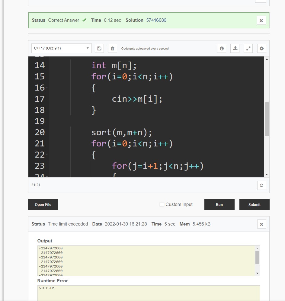 After writing the code I click run button it give Run time error, but when I Submitted same code without any change it executed can anyone explain uses of run and submit? Thanks!