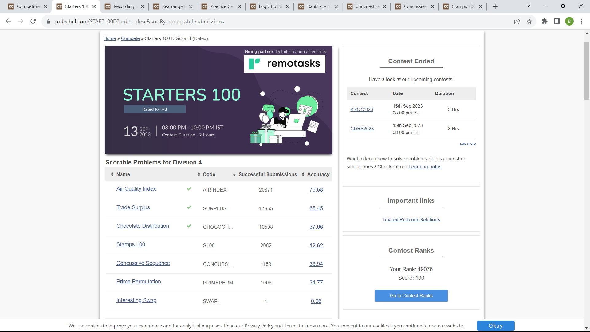 I have completed 3 questions and it has been 20-30 mins still my score is 100