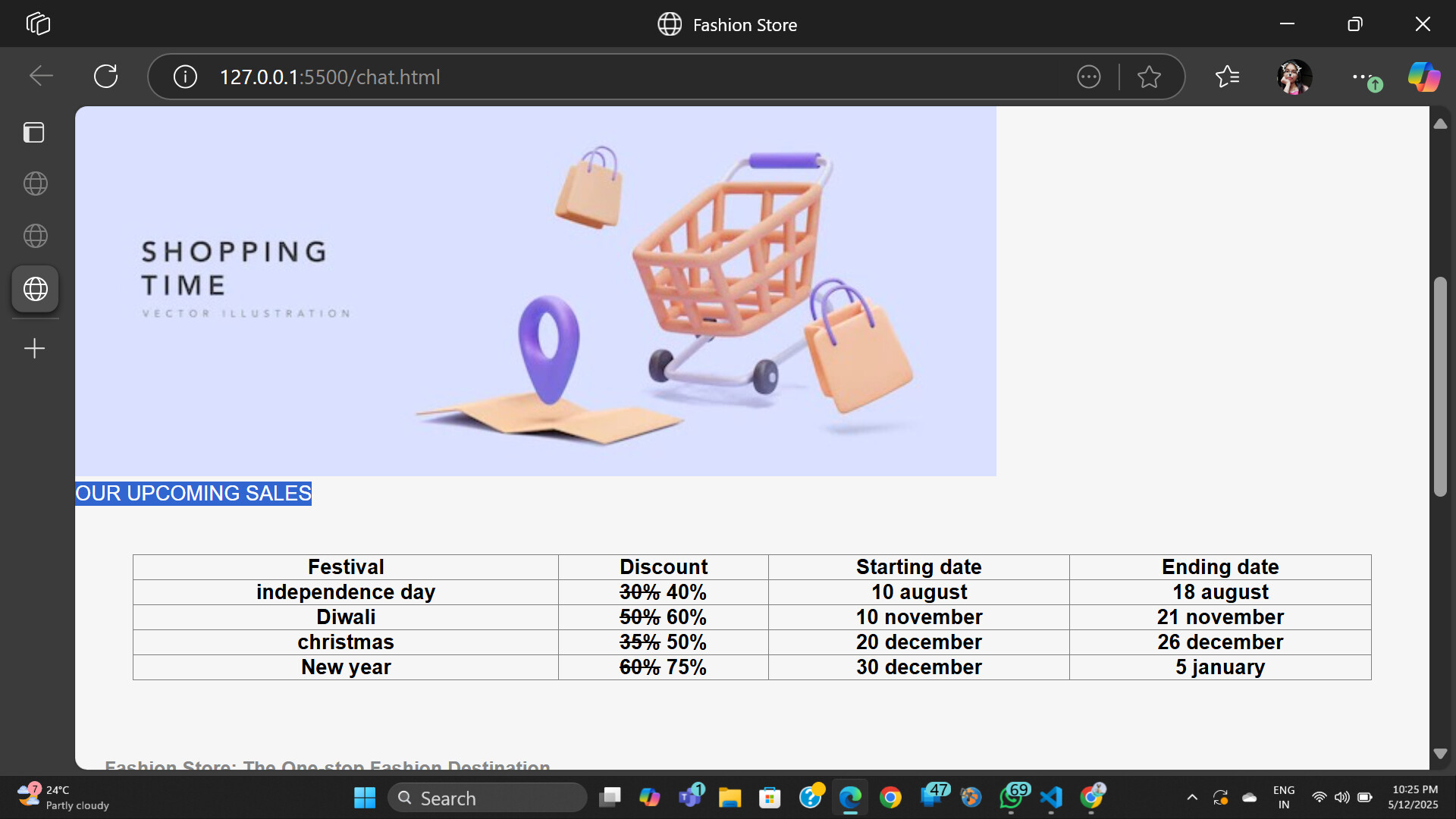 I need the table to be in middle but not coming fashion store website