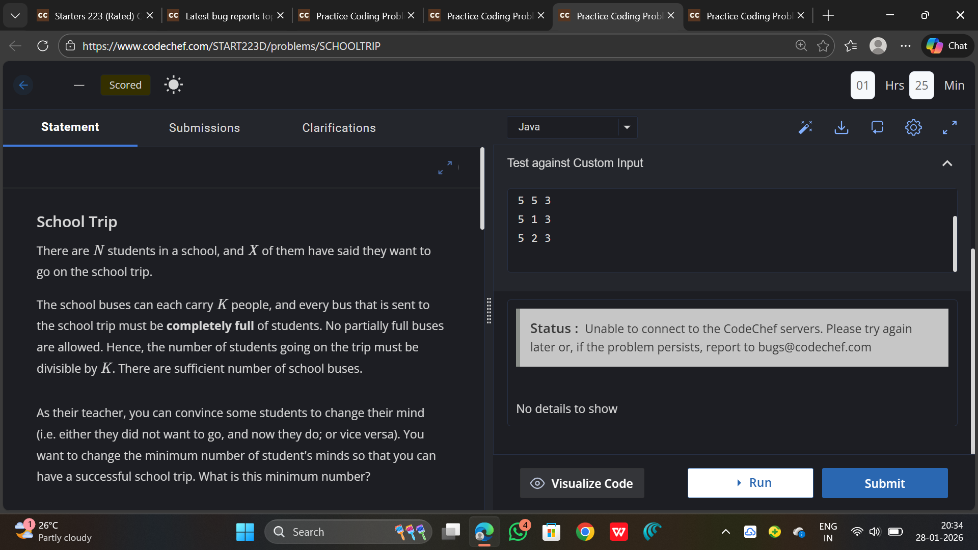Im unable to run or submit my code . Im sure its not my internet issue
