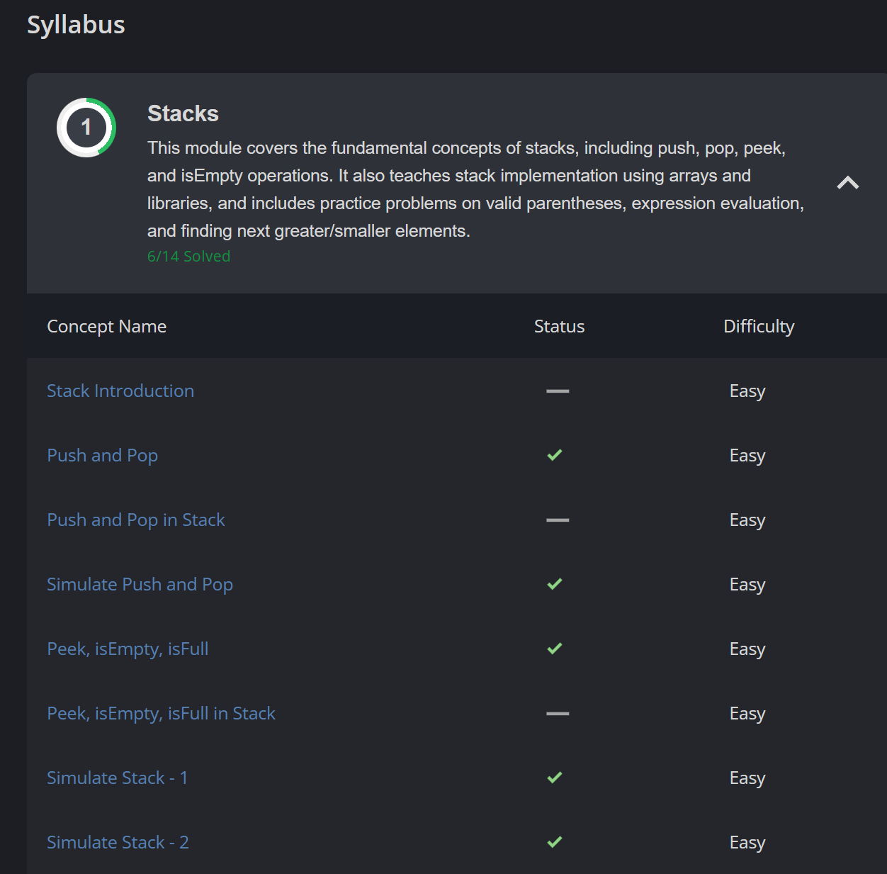 i was learning stacks and queues, i completed course but not get marked completed in theory sections. only show 67% complete but i completed all.