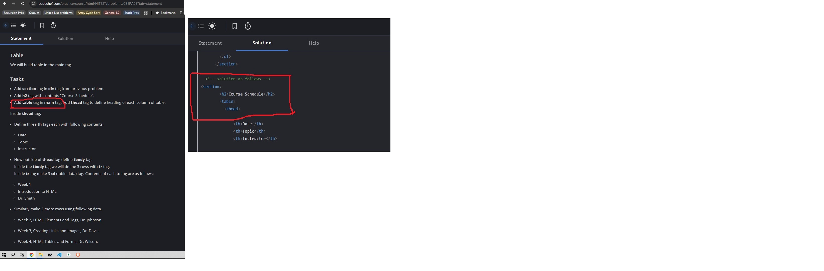 In many of the Questions i have found that the Problem Statement contains Inccorect steps For Example lets consider the following Question in Courses " Projects using HTML / CSS" under Lesson “Create Course Syllabus page” Question Marked as “Table”