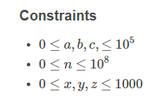 Oh… and now after the contest I am looking at the question and getting frustrated upon myself that I read the constraints earlier as z <= 1000. So clearly it was written separately that z <= 1e8.