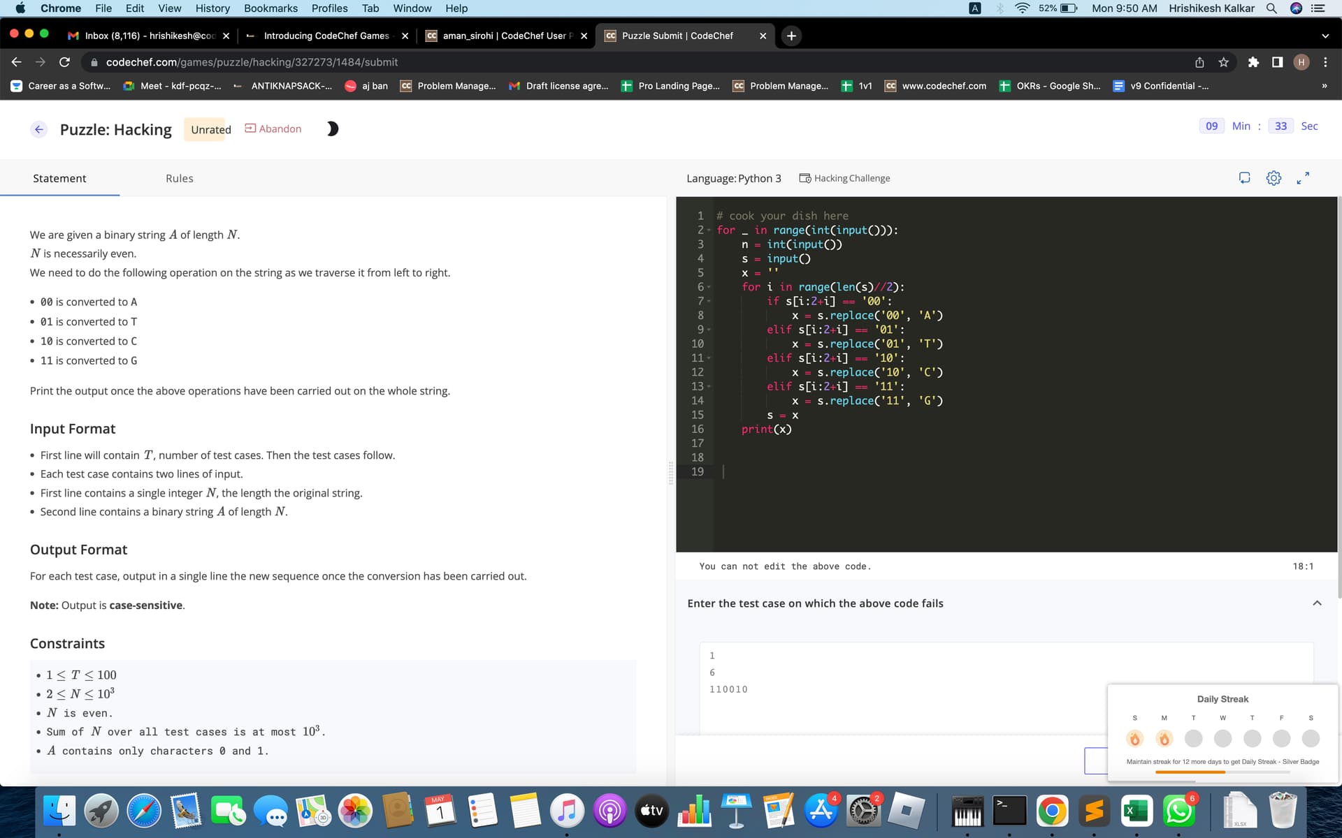 I was trying the debugging puzzle category of 1v1. I solved the problem and tried to compile, but it got stuck and the timer was running, I waited for around a minute but no compilation error or successful message was seen. I refreshed the page and tried to submit, but the result was the same. Also, after the time was complete it was stuck on submit window(checking the result). Please look into this, if it’s an issue.