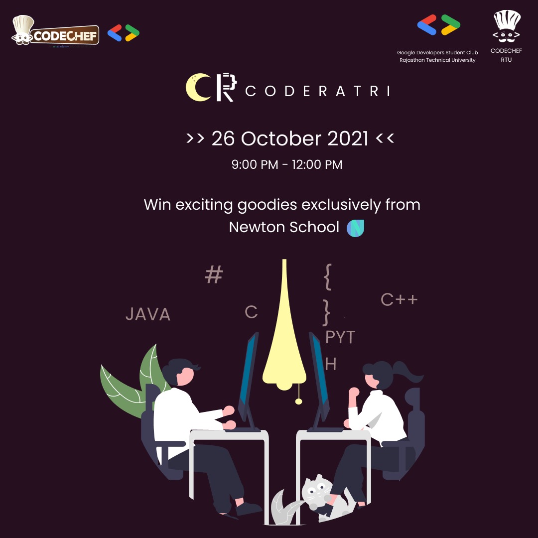 We invite you to participate in Coderatri this Tuesday, 26 October. Organized by CodeChef RTU Chapter.