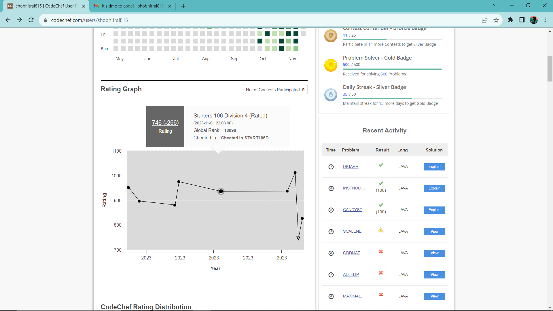 actually i’ve attended the codechef starter 106d there’s and report on me that i’ve cahted in question no(D) this is unfair i haven’t cheated please look into this matter