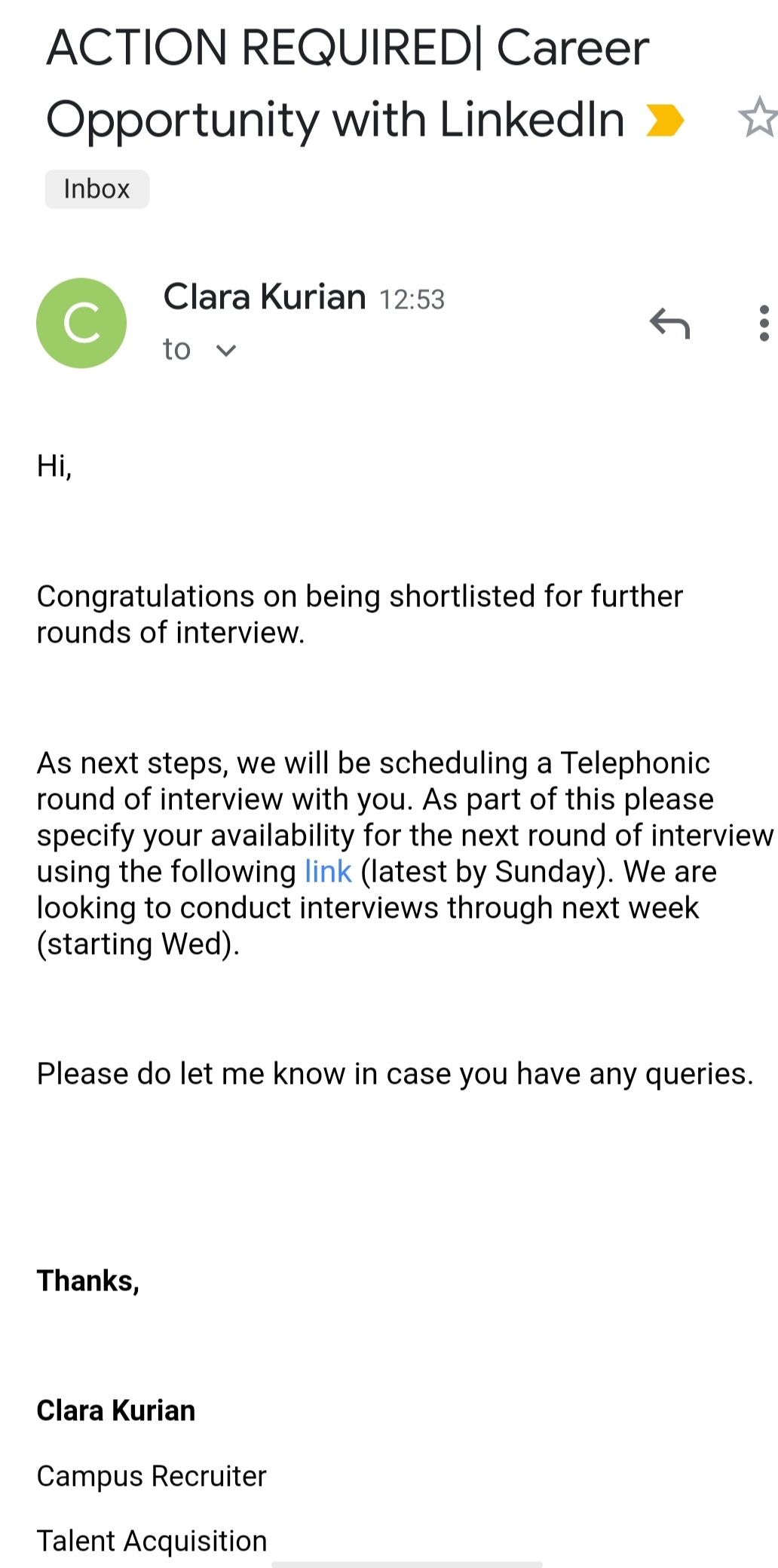 did anyone else received the follow-up mail for interviews?
