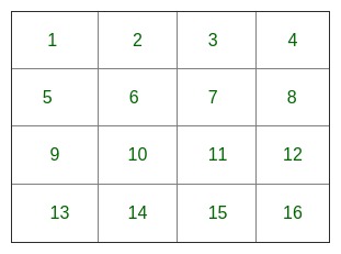 Our initial position looks like this. At each day, we just make the moves which take us towards any corner point i.e 1, 4, 13 or 16.
