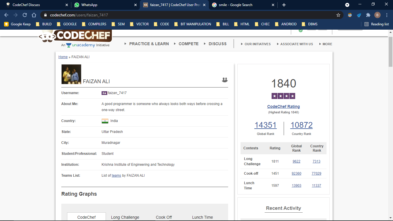 ID LINK → faizan_7417 | CodeChef User Profile for FAIZAN ALI | CodeChef