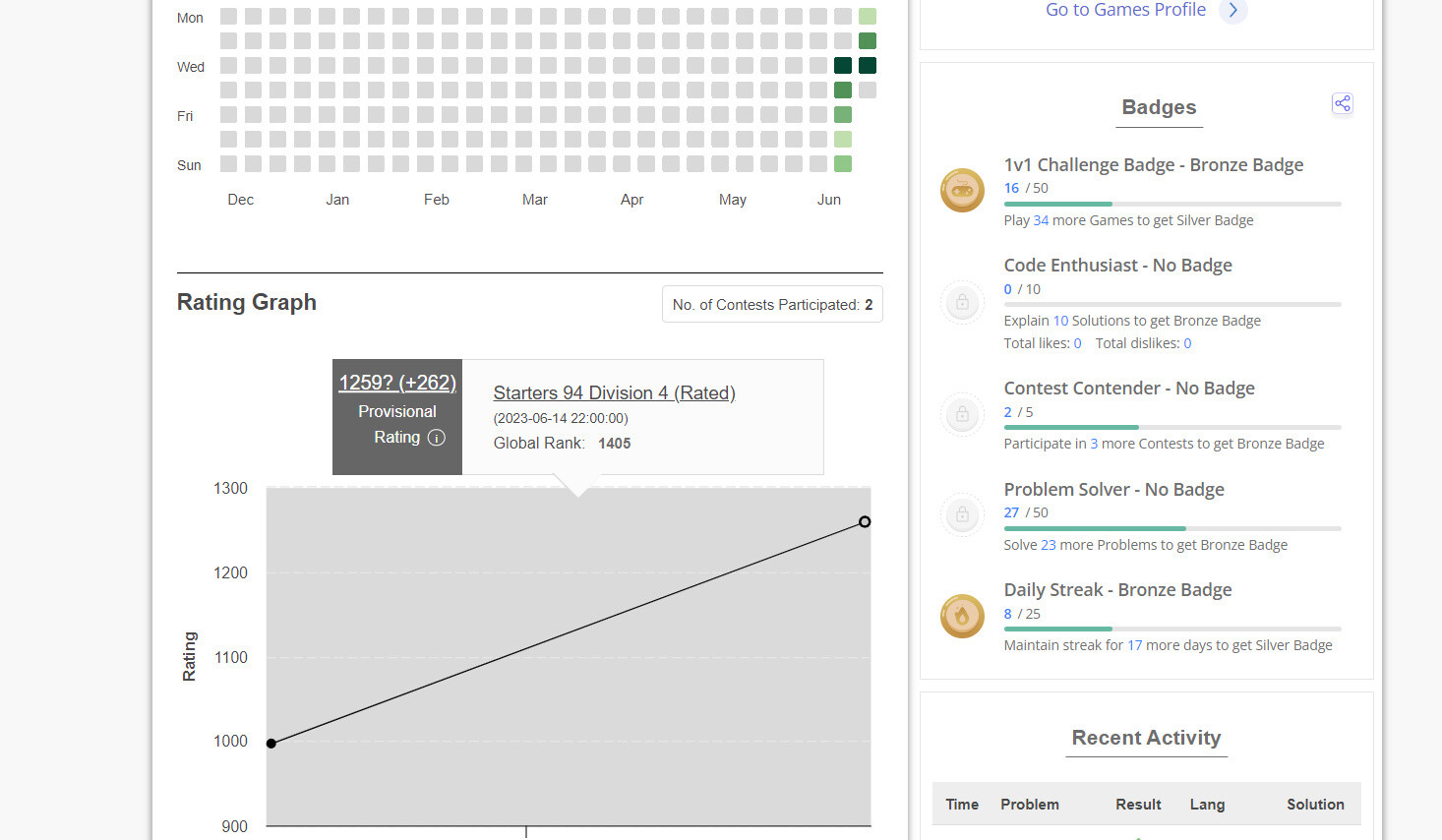 My current rating is showing from my last contest that is 997. My current highest rating is 1259 but it is showing from previous last contest.