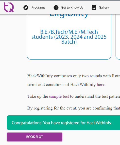 The last date to register for HackWithInfy is 14th Feb 2022. I tried to register for it today(13th Feb) and I have successfully registered for it but when I tried to book a slot, it says that there are no slots available. I wanna know if I get to attend the exam( something like a slot automatically being alloted to me). Please let me know if anybody knows anything about this. Thanks in advance