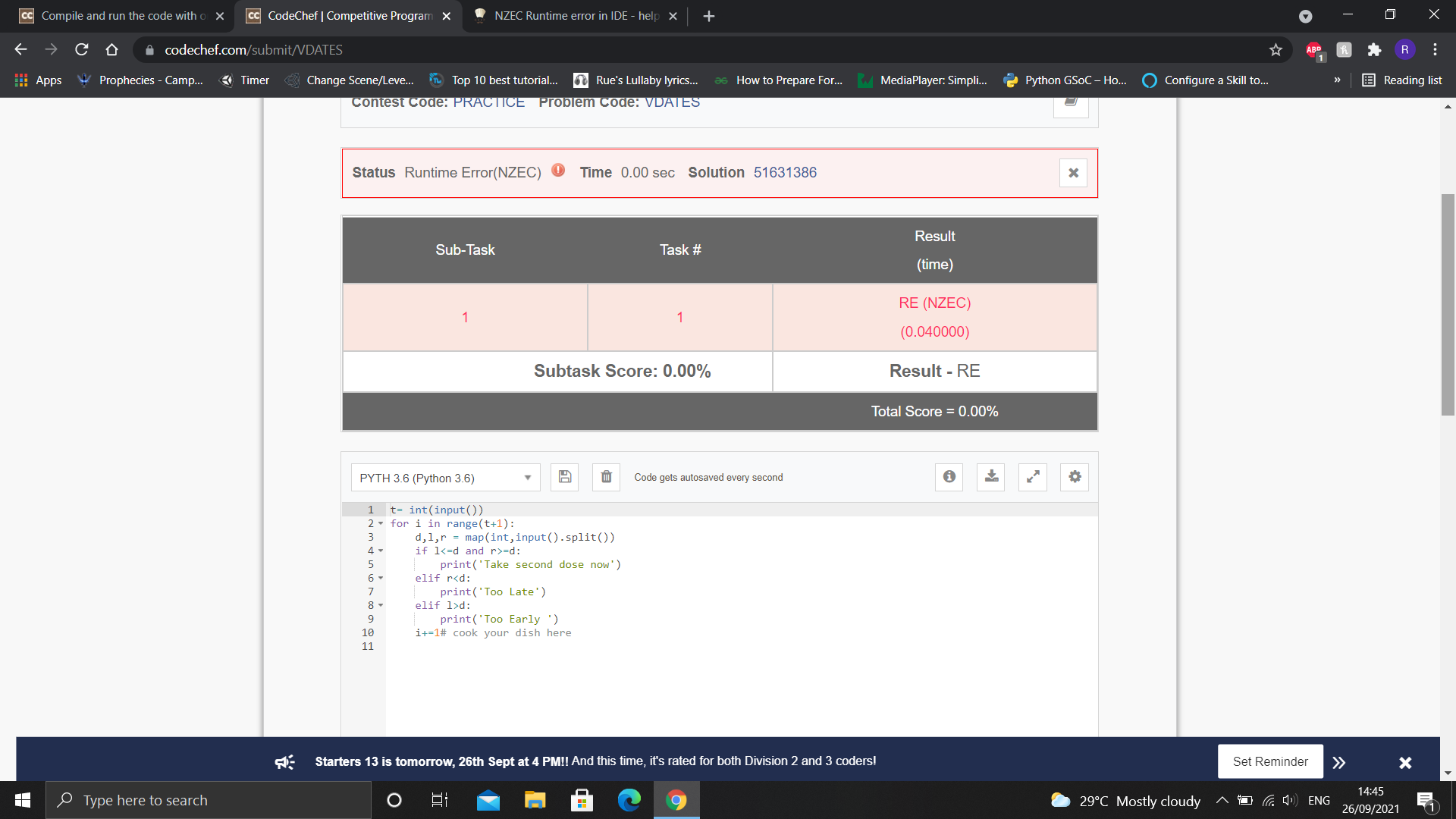 I tried copying that code and running it on codechef IDE, but even that is giving NZEC Runtime error.