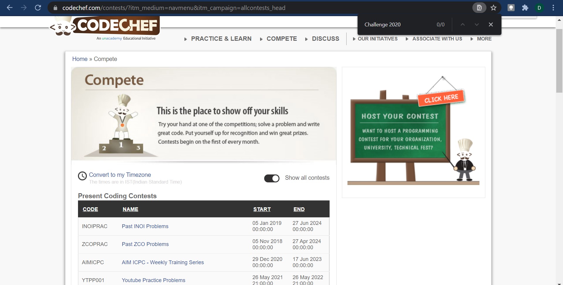 I was looking for Old Long Challenges in the past contests section i.e. from 2020. However, to my dismay, I couldn’t find any long challenges in the past contests section from 2020 and before while all other contests are visible (Cookoff, Lunchtime, Rated/Unrated Extcontests).