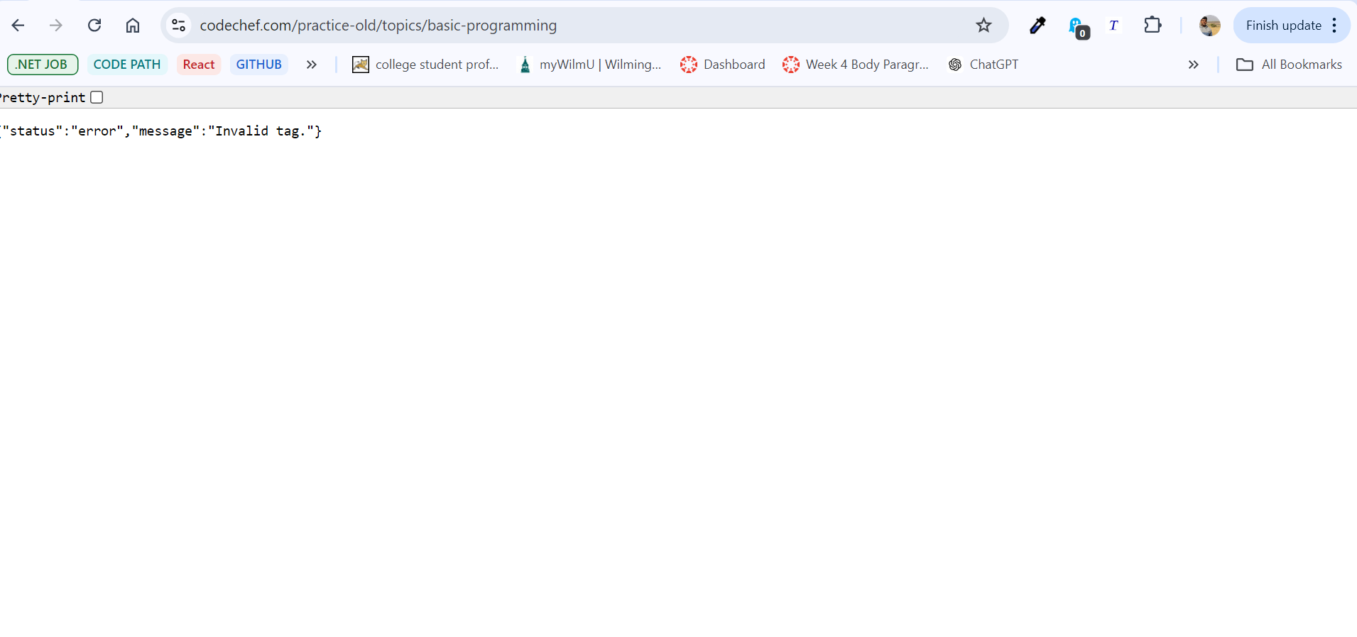 when i open the link: CodeChef: Practical coding for everyone in codechef and applying “basic programming” topic from left panel "topics " section the filter is applied which is absolutely fine. but if i refresh the screen again then i am getting below error which is screenshot 2.
