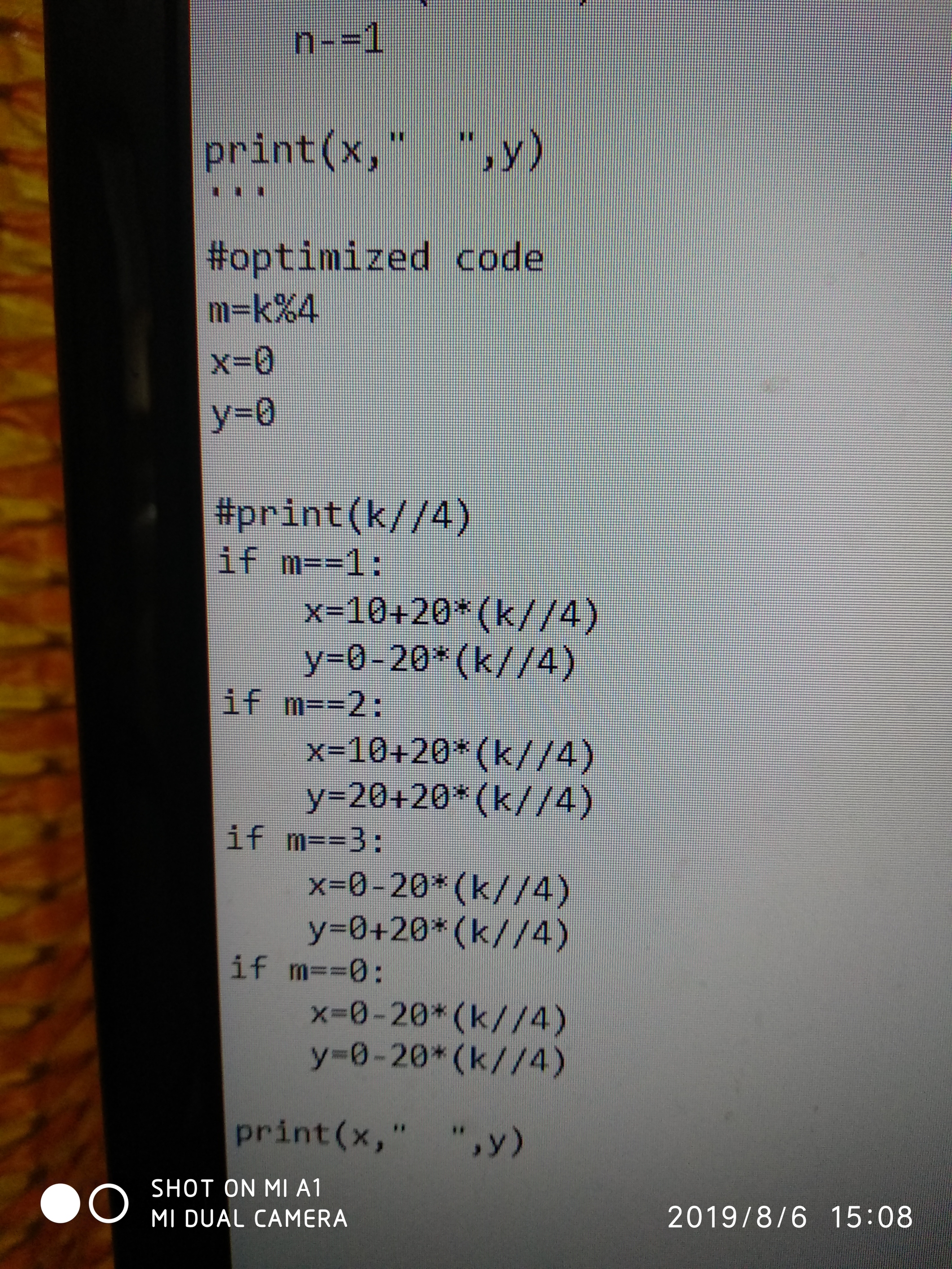 I was supposed to solve this question in 30 minutes and the IDE didn’t even had syntax highlighting. For someone who hasn’t been in competitive coding for long, it has been tough for me. Also, I was unable to find compile option in the IDE provided, but so couldn’t the “IT Manager” at the exam center. Btw, how did you get the pattern? I wrote the coordinates upto 10 to figure out pattern. (which I failed at)