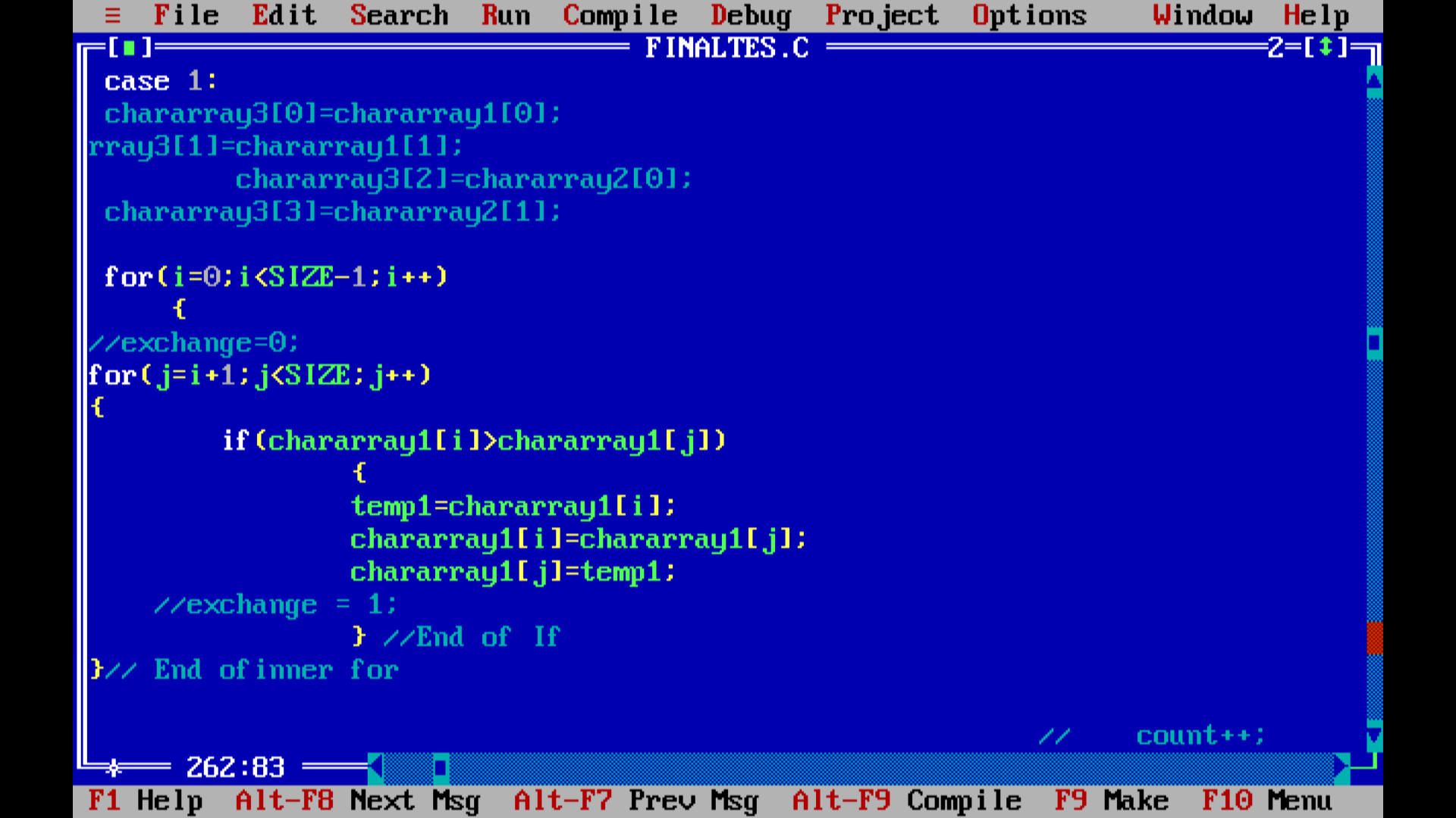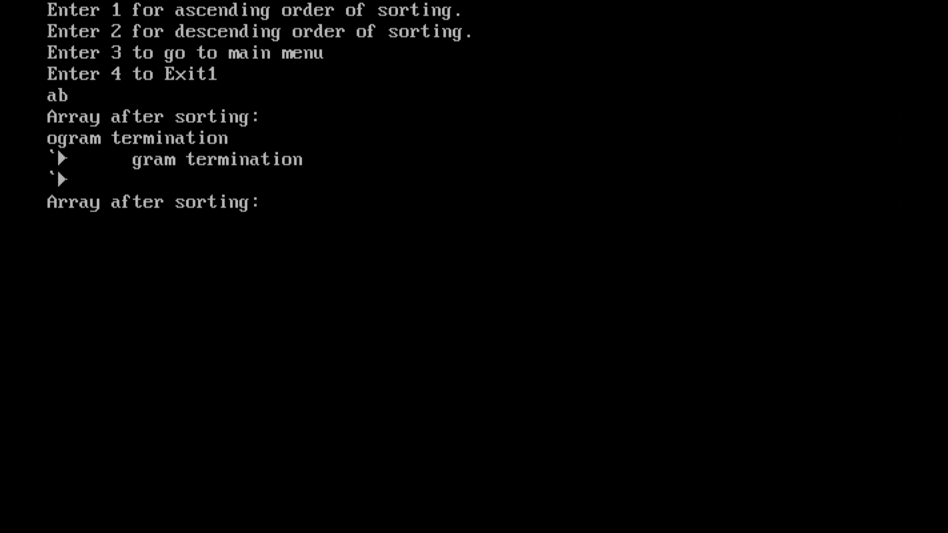 It should be as simple as this… I don’t know why you are using chararray2… replace a in my code with the name of the character array you want to sort and it should work just fine. If the actual function of your code if different than just sorting the array then share the whole code and say accordingly please.
