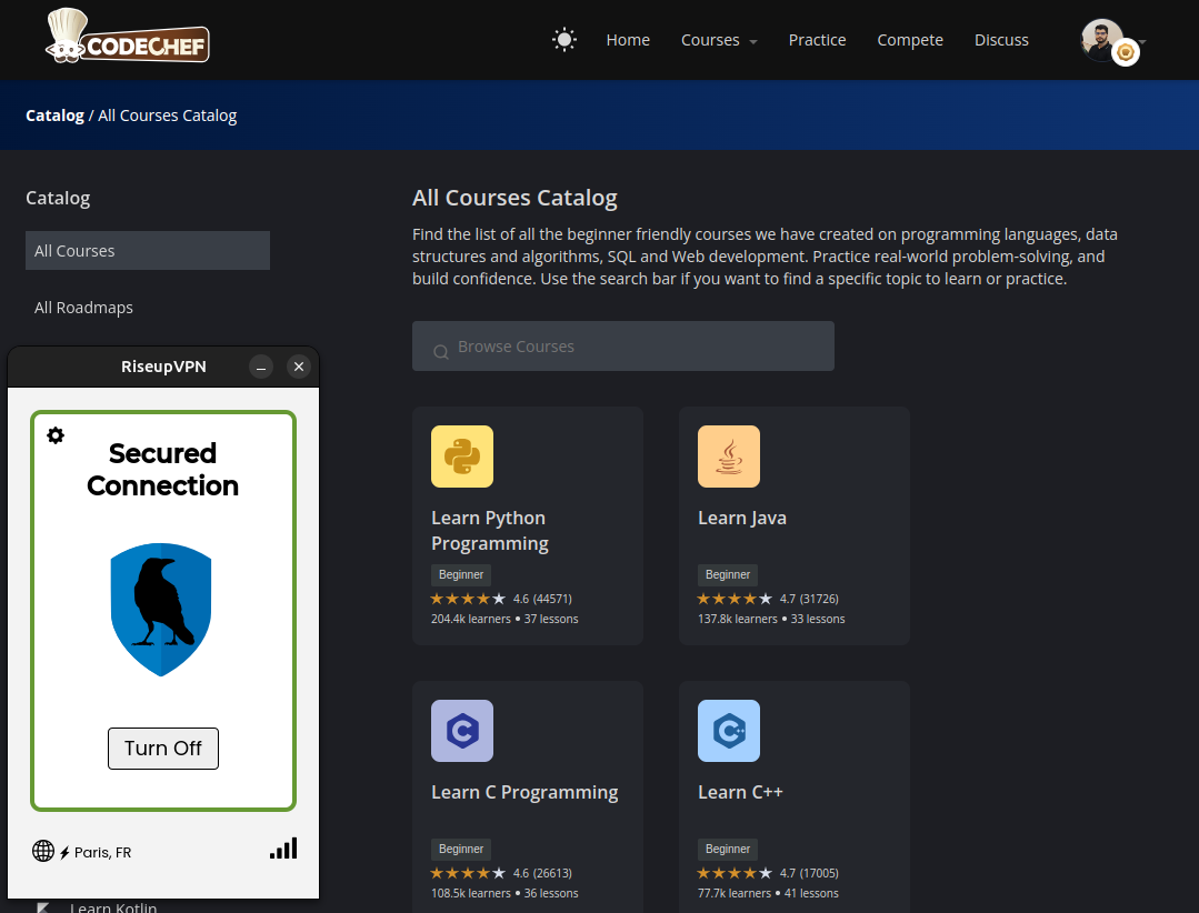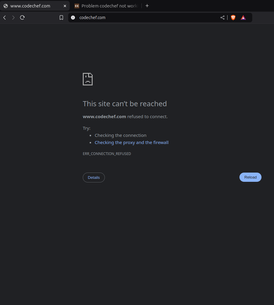 Thanks I found a solution it was funny I was blocking all porn sites I think there are sites that use Cloudflare but the strange thing is that I blocked those sites a year ago . 16 days ago I was using Code Chef without any problems if you have an idea about what happened tell me so I can benefit and learn.