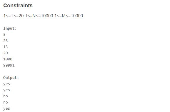 But the example input is 99991 which is out of it. So, It should be 100000 for N instead of 10000.