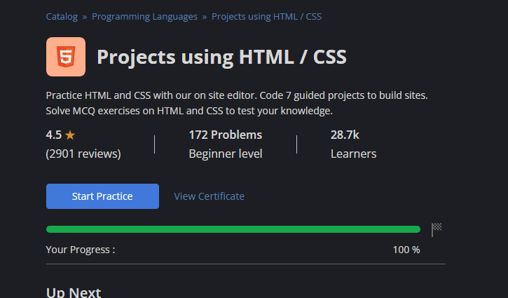 So i have completed the following pratice path " Projects using HTML / CSS" and as you can see in the 1st screenShot