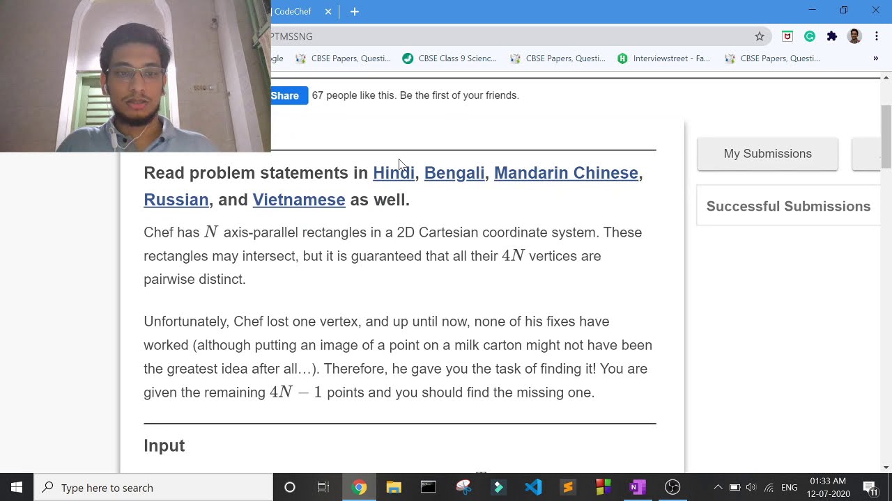 std::mapin C++,TreeMapin Java or adictionaryin Python to maintain the number of points in each horizontal and vertical line. - Sort all the x and y coordinates and loop through them to find the one with odd frequency.