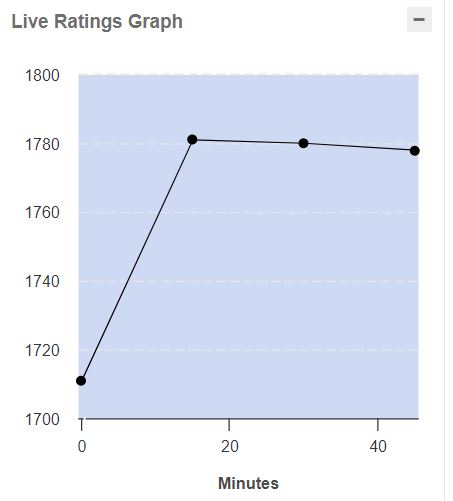 my rating in STARTERS 95 live rating started from 1548 and ended at 1533 (15 points decreased)