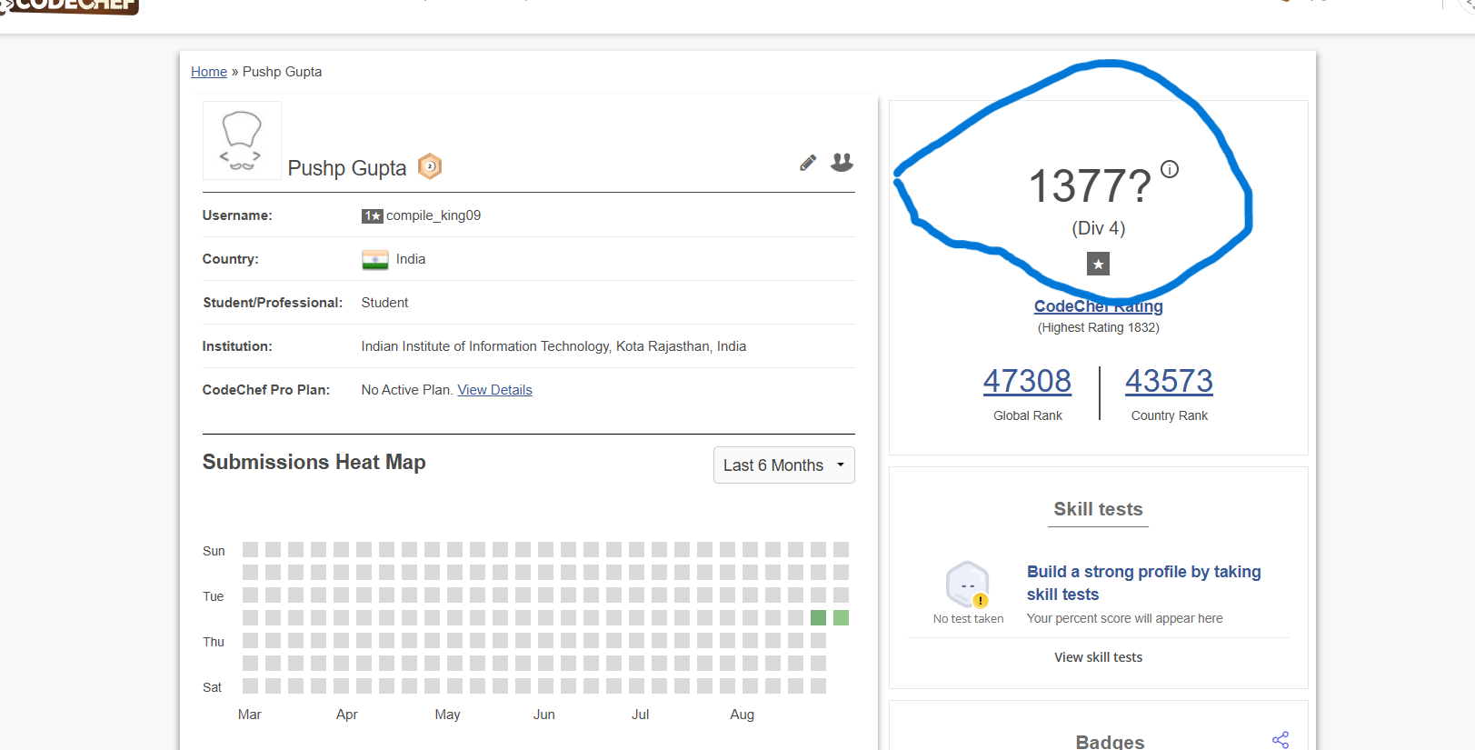 I have participated in recent contest on 3rd September and my rating is updated and changed everywhere except the main rating section, the main rating is not showing me the latest rating even it is updated in highest rating section and also in rating graph.